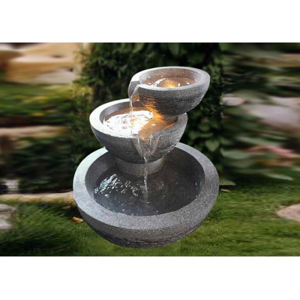 H 64.5CM Stonestone Effect Three Bowls Light Luxury Outdoor Decoration With Lighting Water Ornamnets